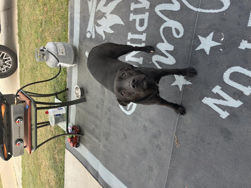 Pet Description:About 6months, sweet girl, black with white chest, back left paw hs two white toes |