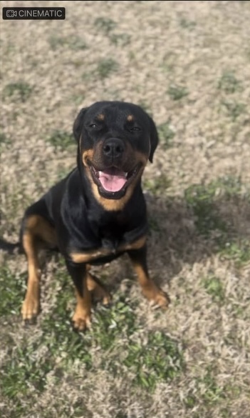 Pet Description:Black Rotweiler girl, 2yr old, wearing bright pink-red collar. Around 60lb. |