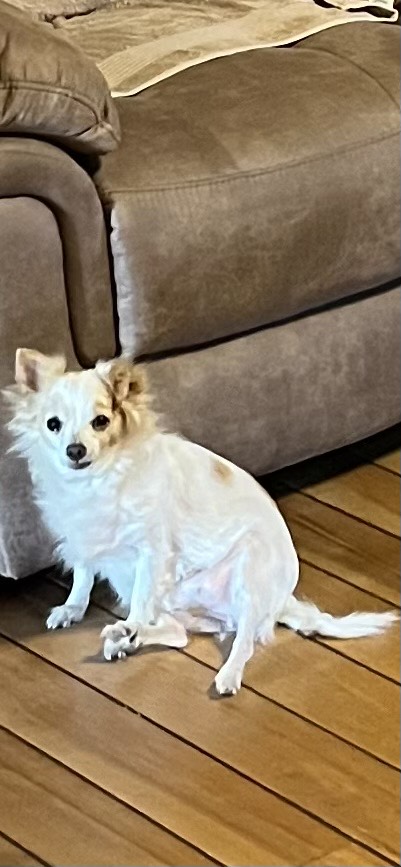 Pet Description:long haired chihuahua she is 16 years old cannot hear or see well just had surgery on her stomach area has a bit of a limp |