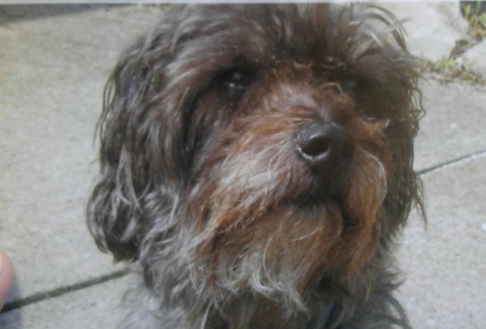 Pet Description:Looks like a miniature benji from the movie Benji. Gray with creme color belly and legs. Lhaso apso poodle mix 14 years old |
