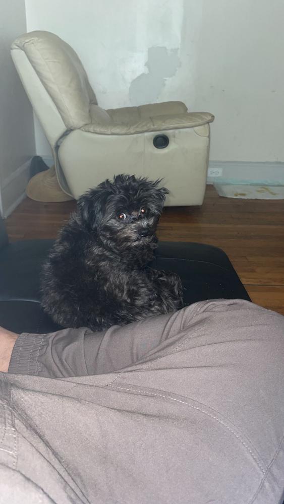 Pet Description:He is fully black with a white spot on the bottom of his face. |