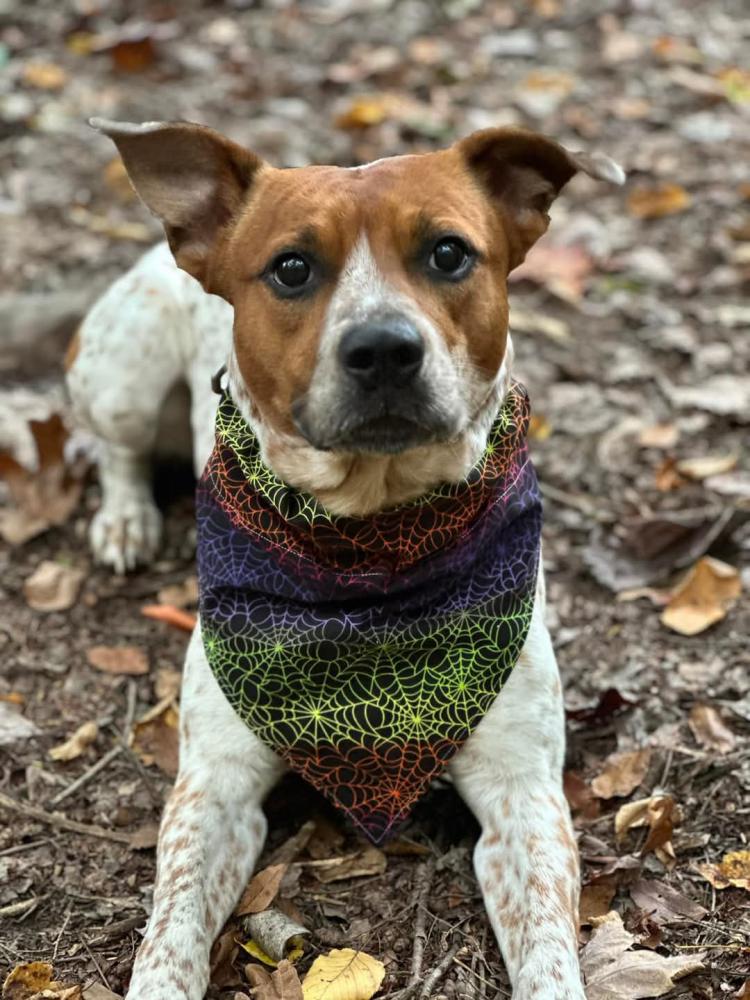 Pet Description:Ace is mostly white with brown spots like a heeler. His head is mostly brown. He's wearing a blue and green collar that has no tags on it. |