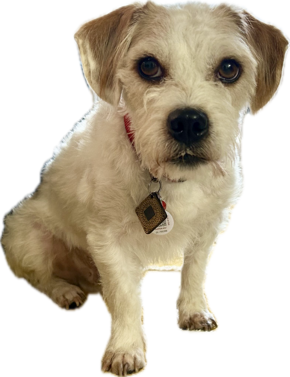 Pet Description:Havanese/Norwich Terrier mix. White with tan/brown ears. Big brown eyes with black liner. ~15 lbs, very skittish. |