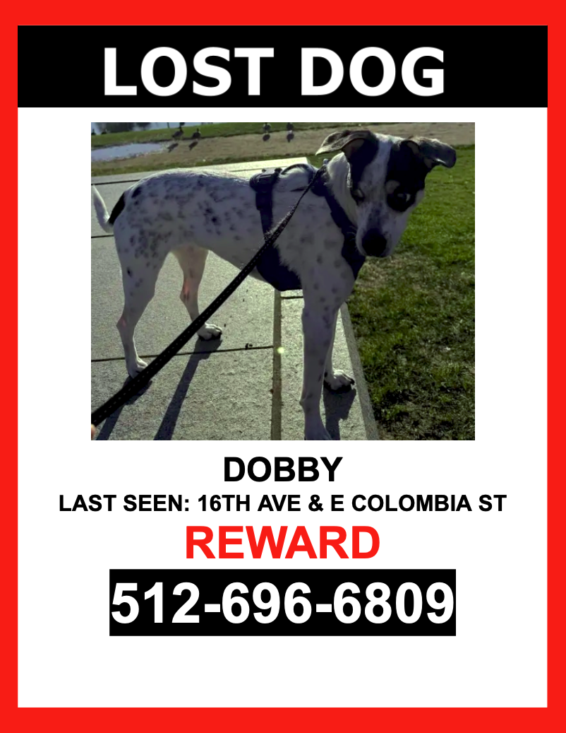 Pet Description:**MISSING SINCE 04/10/2025 AT 10:00 AM** DOBBY is a BLACK & WHITE WITH LIGHT BROWN ON THEIR EYEBROWS / MIXED BREED / FEMALE who escaped and was last seen near 16TH AVE & E COLOMBIA ST. DOBBY is wearing HER GREY THUNDER COAT with tags and is microchipped. If you see DOBBY please DO NOT CHASE HER. PLEASE CALL OR TEXT ONLY. 512-696-6809 $$ Reward $$ |