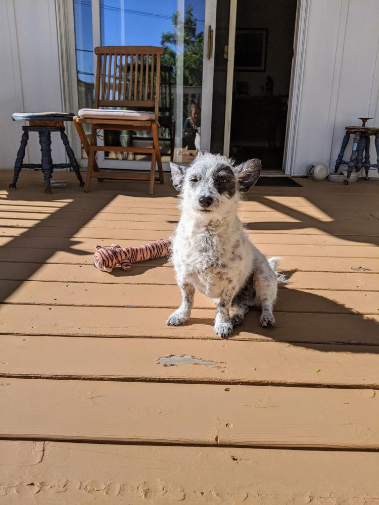 Pet Description:Small dog, scruffy/worry hair, black patch on one eye. Sweet but shy. |