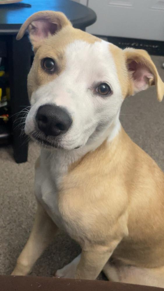 Pet Description:Tan/Cream Body with White on face, paws, and chest. Was wearing a blue harness when found. |
