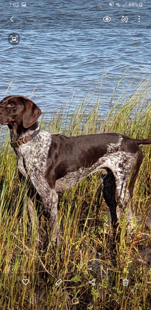 Pet Description:Male GSP. Wearing orange color with name and phone number. Chipped and neutered. Gatsby is his name. Very sweet and friendly reward if found |