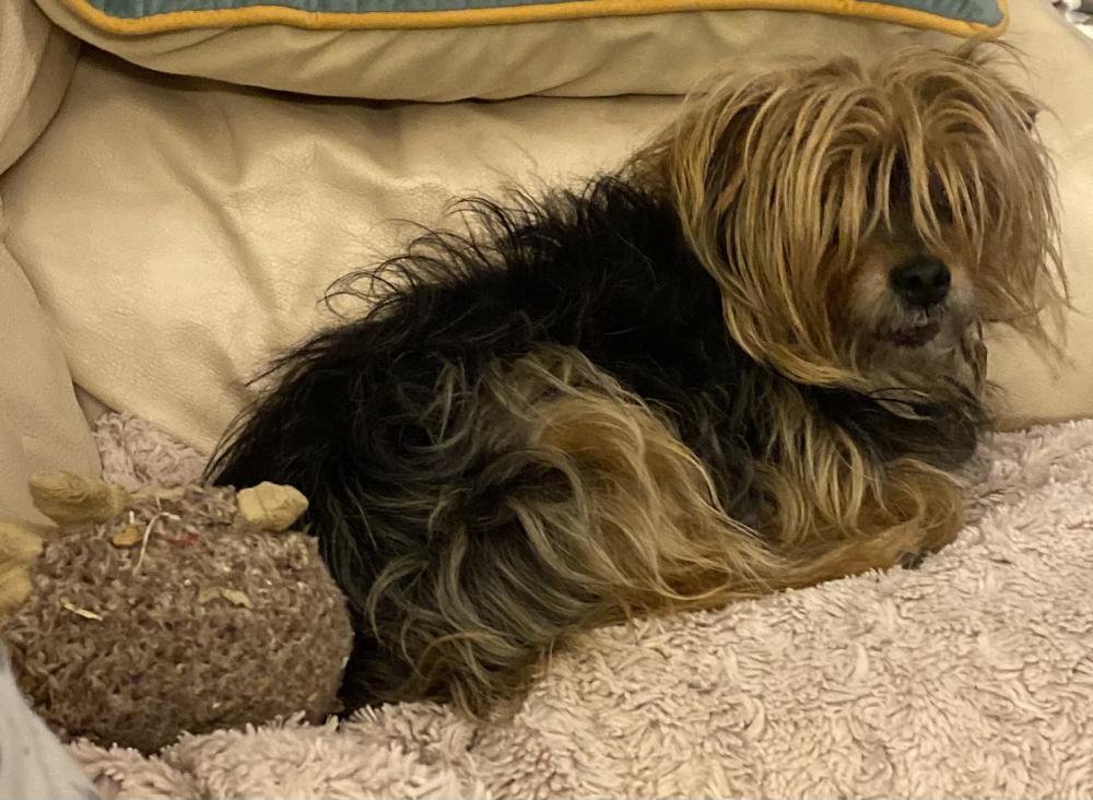 Pet Description:Henry is a Yorkie poodle mix, looks like a smaller Yorkie with floppy ears. He is 17 years old and small. Black and brown longer hair. He had a fat tumor on his neck |