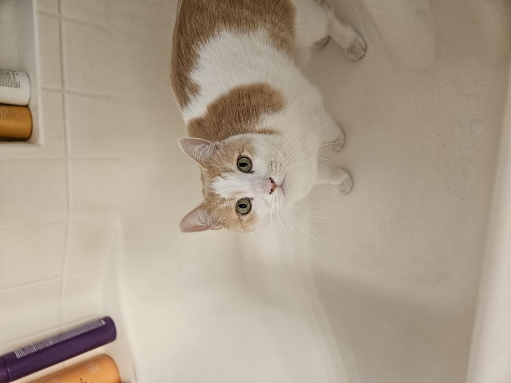 Pet Description:Flash is a very large cat, mostly white and a tan color. He has a little scar on his nose, no collar and no microchip. He has little rings on his tail. He is about 6 years old, and around 20 pounds. |