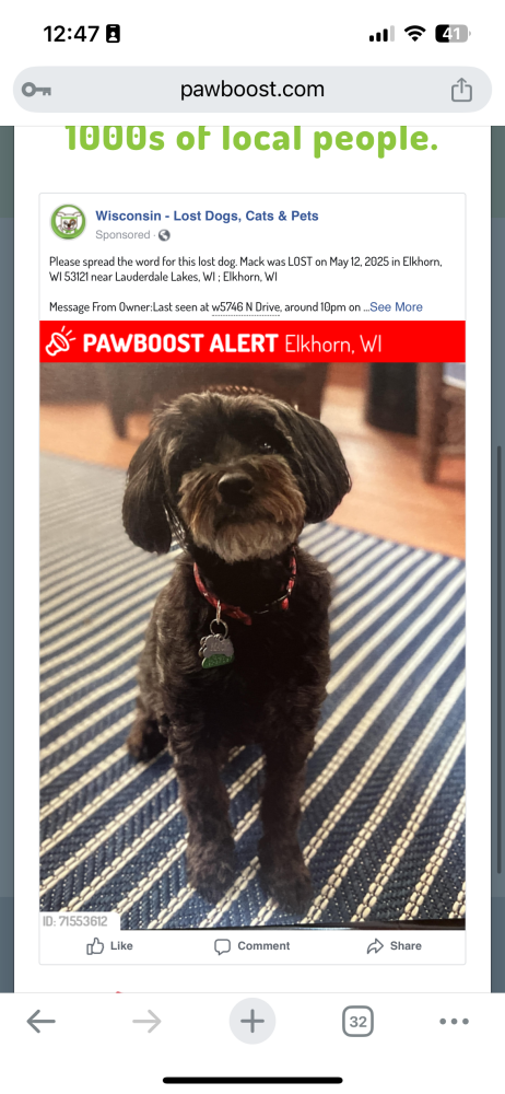 Pet Description:Black Yorkie Poodle, 15 pounds; Mack; Last seen around 10pm at w5746 North Drive, Elkhorn, WI. Please help us bring him home by searching around the area. Mack is Deaf & Blind, but he can smell & taste. Can’t jump high. Phone numbers: 8479710171; 8474178184; 8474178988 |