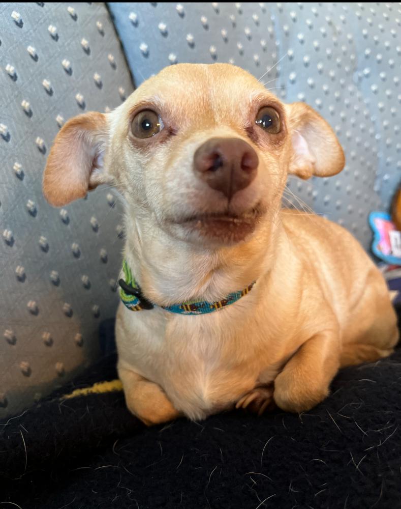 Pet Description:15 lb female chihuahua, tan coat, about 10 years old. Friendly |