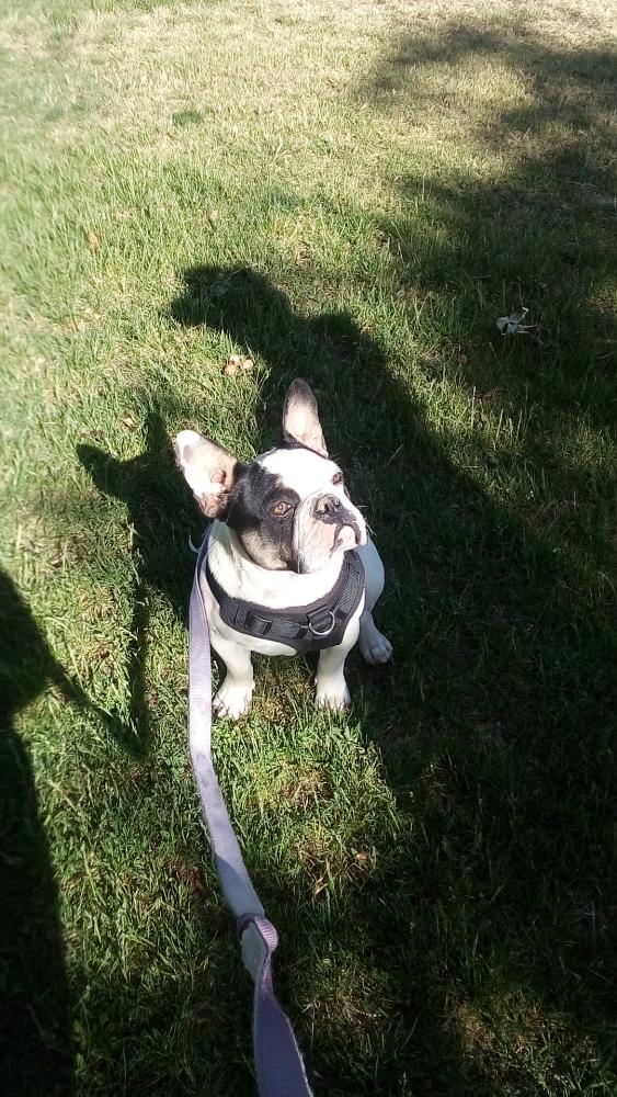 Pet Description:No collar or tags. (the harness he's wearing in the photo isn't his) Mostly white with some black and tan markings. Male, calm and friendly. Unique markings his owner should be able to describe. I want to make sure he finds his home. |