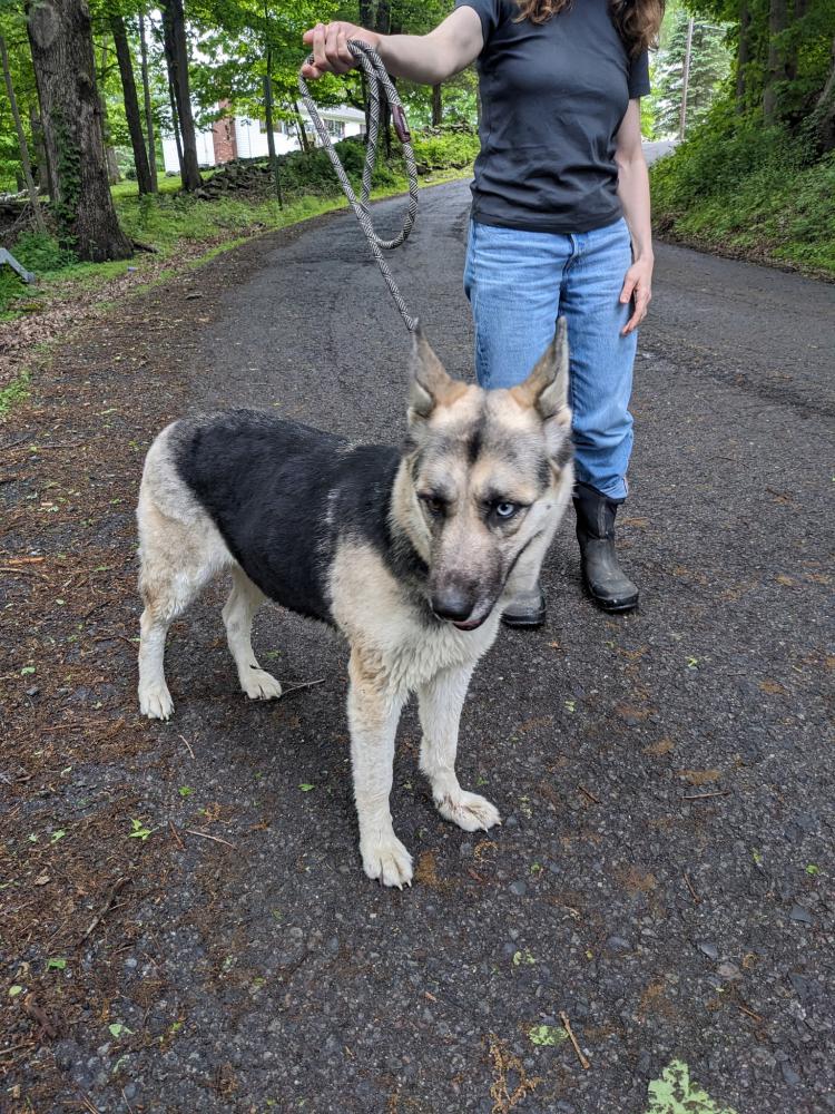 Pet Description:Sweet female shepherd mix with one blue eye one brown/blue eye. Seems to be well-taken care of, no collar or ID tag. She will be taken to a vet in the morning (Saturday, May 17) to be scanned for a chip. |