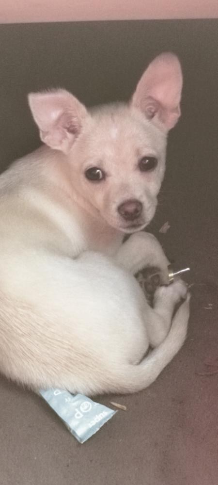 Pet Description:Puppy has bad heart nose is kinda tanish black tummy is brown and pink black leather collar homemade with green rhinestones she has a heart condition and needs her medication daily please return her if found |