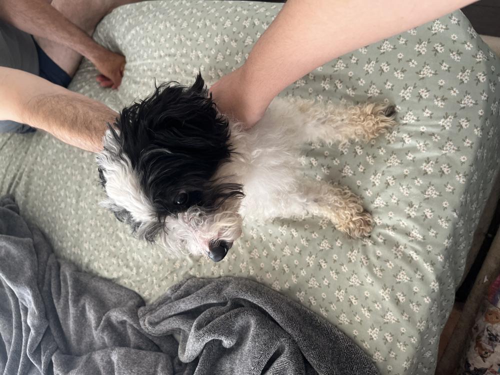 Pet Description:Small black and white dog. Very sweet. |