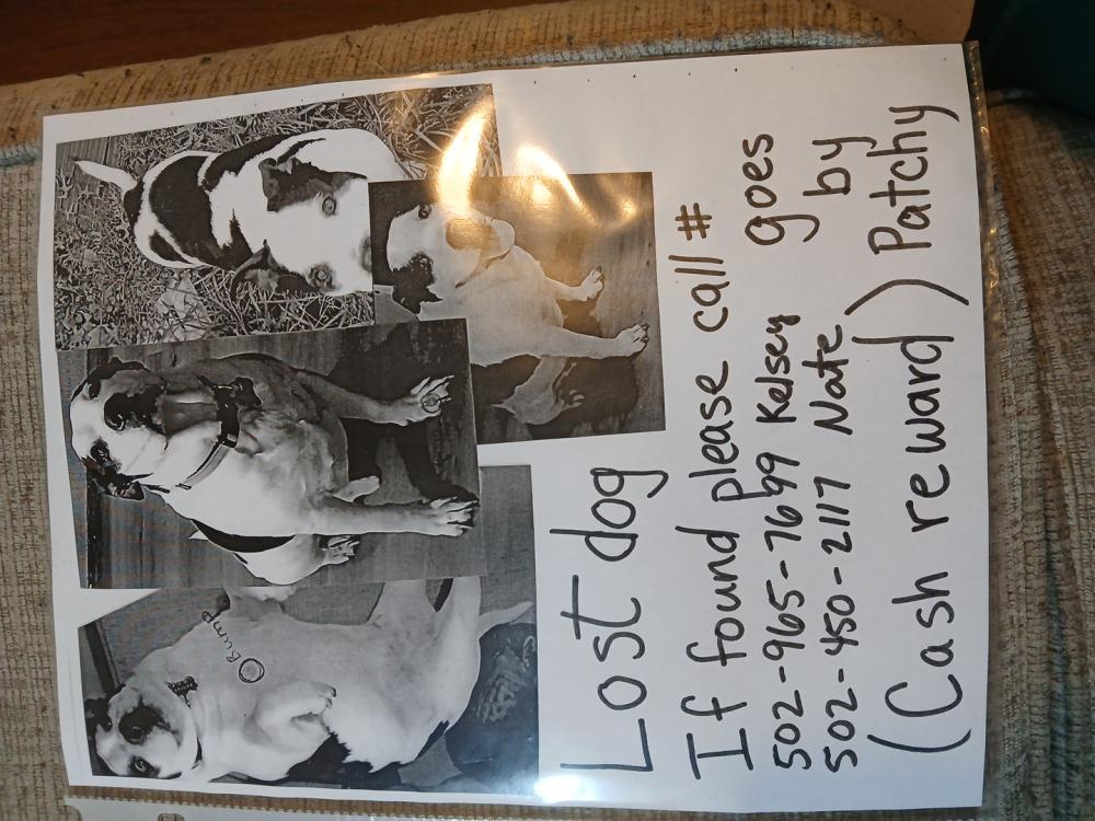 Pet Description:He's a white with black spots. Sweet dog older and has a bump on his chest and front paw |