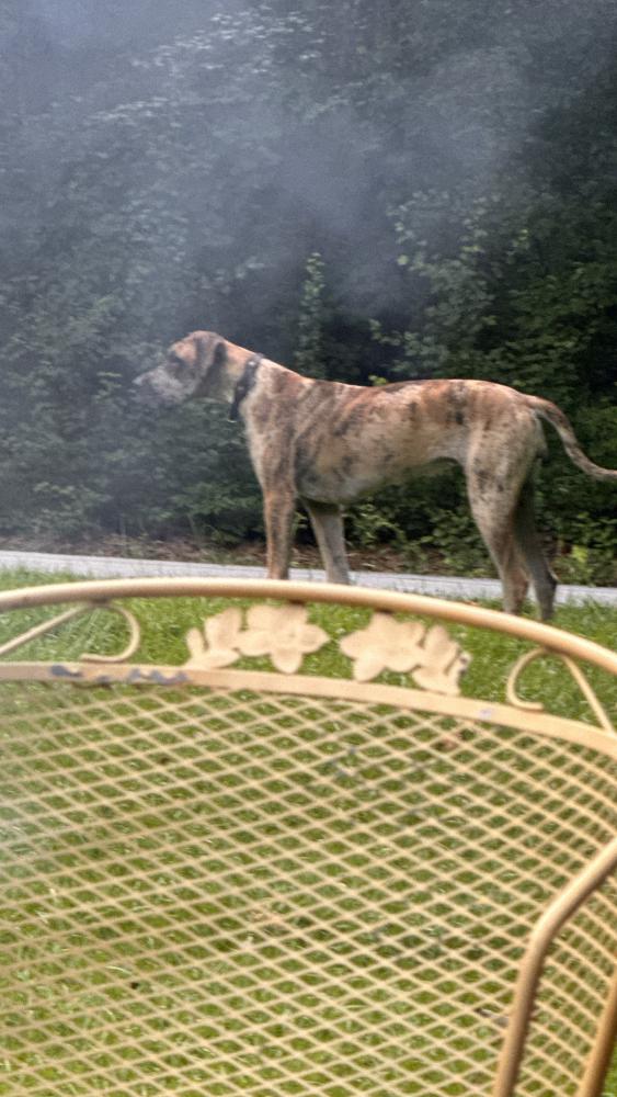 Pet Description:100 lb tiger striped brindle Great Dane. Her name is London Fog and has a brown leather collar. She was last seen with our sweet pit-bull mix. Both are very sweet and loving. She was my wife’s baby puppy from birth. Only a year old. |