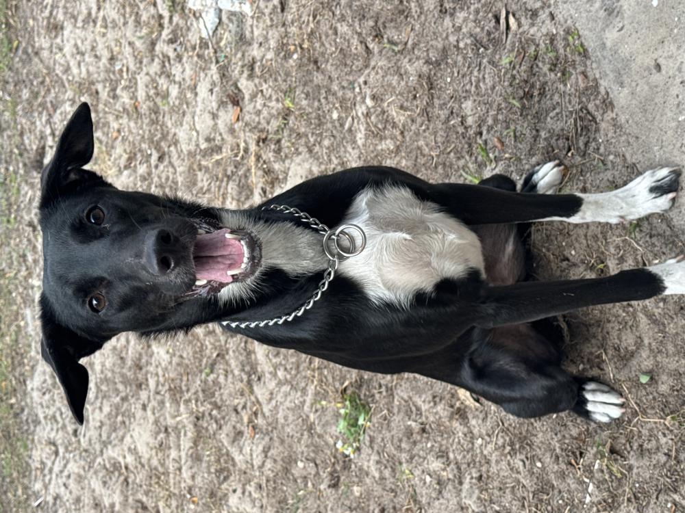 Pet Description:Black with white chest. Curly tail(like a pig) She is timid but not aggressive. She like tennis balls, squeaky toys and cheese. She is microchipped |