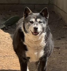 Pet Description:Black dog with white chest & some white on her face. Beginning to grey. Short but very wide. She's very overweight. Her owner just died & she's lost, no pun intended. Do not chase. |