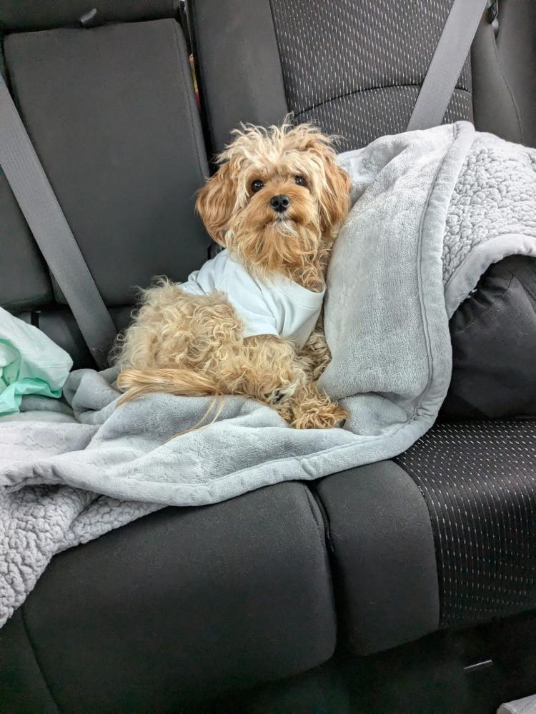 Pet Description:Cavalier Poodle mix. White Tee Shite on |
