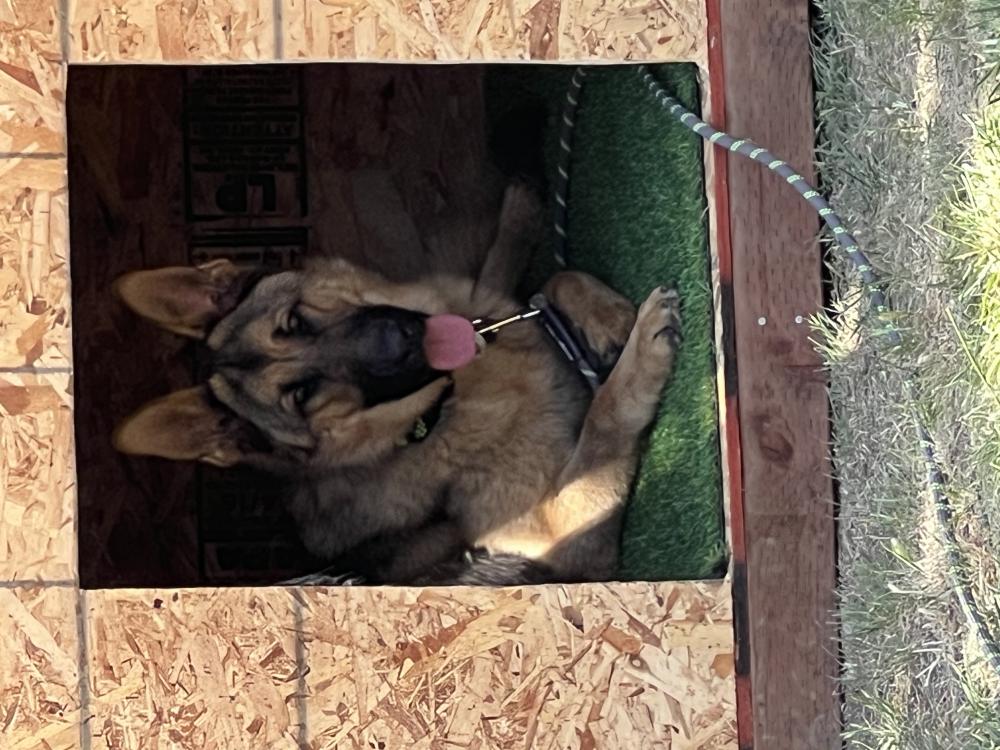 Pet Description:<1 year old male German Shepard, has green/silver collar |