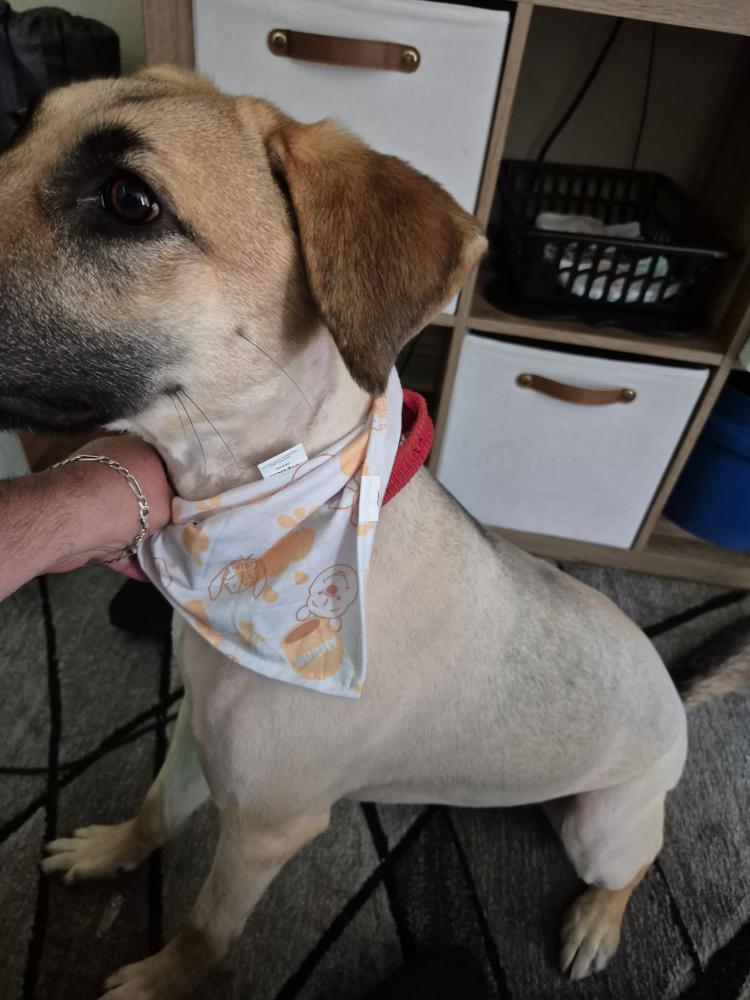 Pet Description:Floppy ears, no collar, short cut hair, very friendly, will respond bailey. |