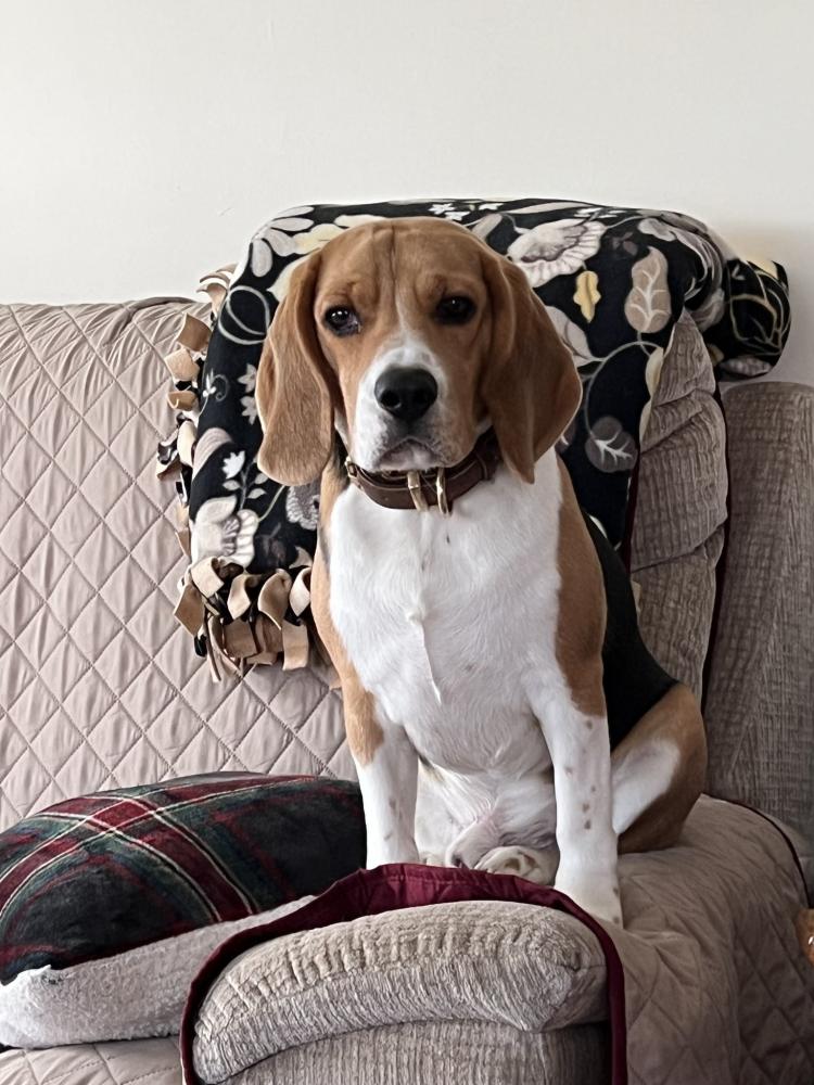 Pet Description:1 year old male beagle, 30lbs, 15inches, tricolor. Has a large white patch on his left shoulder and slightly droopy right eye. Brown collar with tags. He is microchipped. |