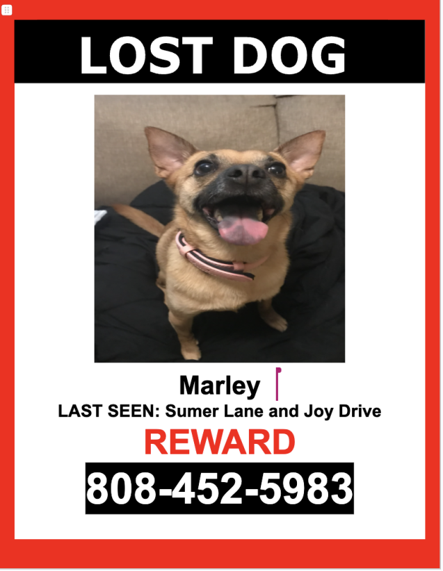 Pet Description:**MISSING SINCE 06/30/2025 AT 9:00 AM**Marley is a FEMALE, TAN W BLACK MARKINGS, SHEPHERD MIX who escaped and was last seen near Sumer Lane and Joy Drive.Marley is wearing HER Collar with tags and IS microchipped.If you see Marley please DO NOT CHASE HER.PLEASE CALL OR TEXT ONLY+808-452-5983 |