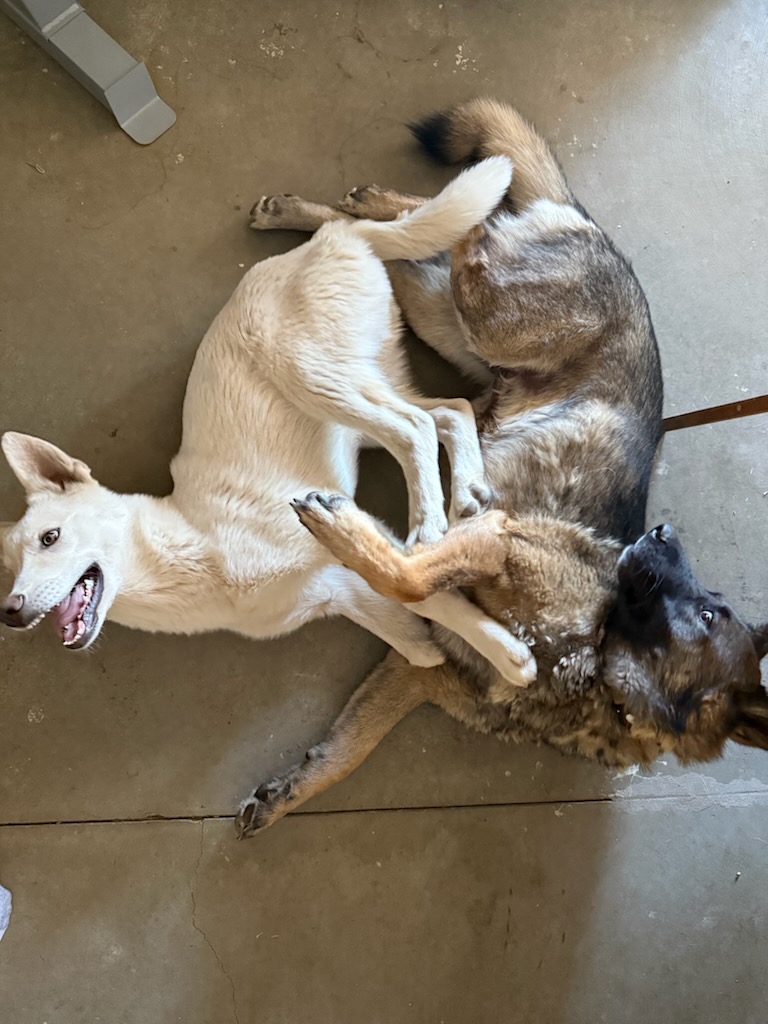 Pet Description:He is completely white with light green/tan eyes. About 6 months old and loosing his baby teeth, so all his k-9 teeth are gone right now. No collar. Shy and may not come when called. |