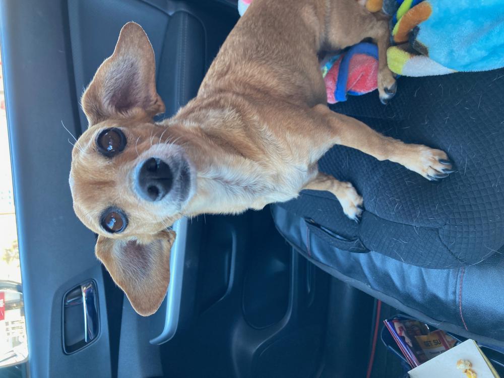 Pet Description:Small, tan & white female Chihuahua mix, fixed, sweet personality. Very well taken care of - somebody's baby. |