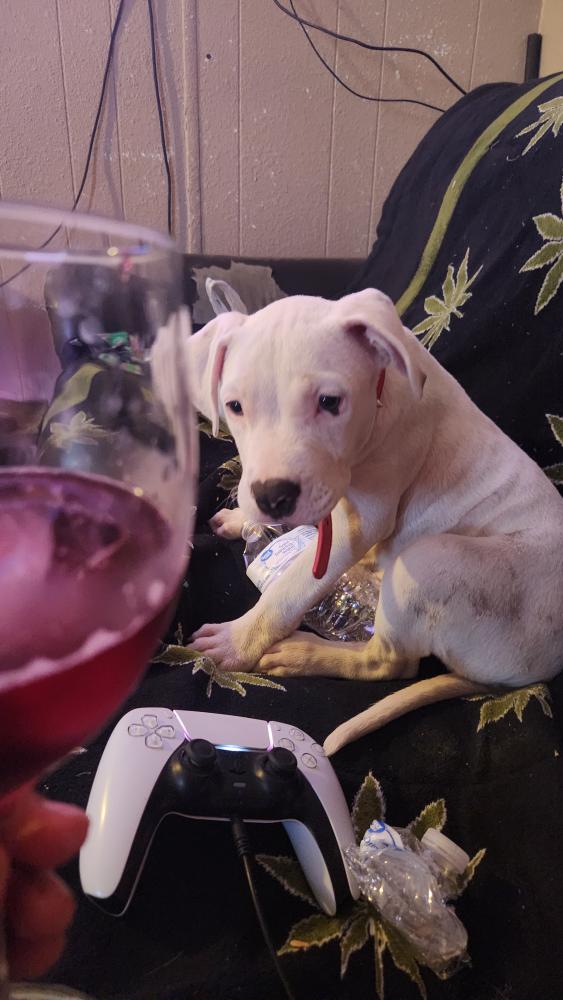 Pet Description:She is all white with black spots in her skin not the coat she has a black spots in the eyes |