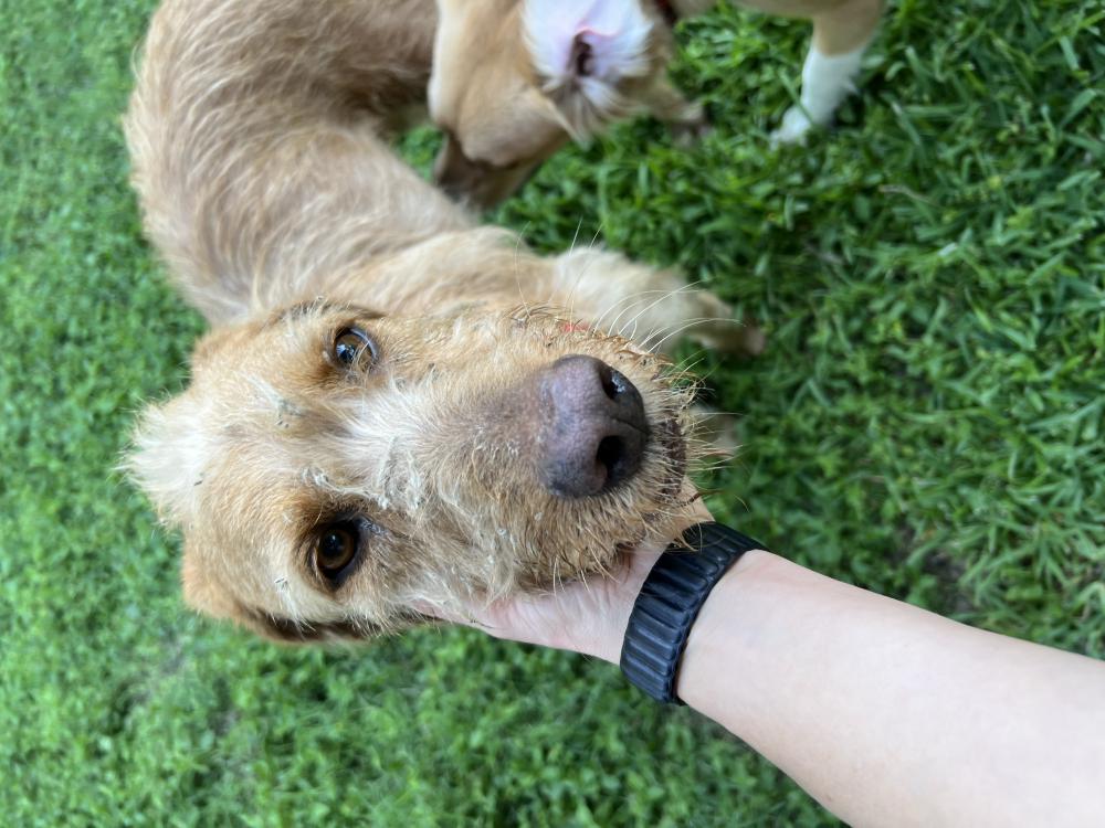 Pet Description:Sweet looks to be a Wirehaired Vizsla, he’s wearing a red collar |