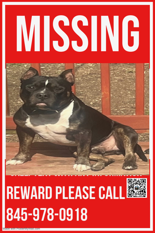 Pet Description:Black with white on his nose, forehead and chest. Also has some white and brindle on his legs. He’s 6.5 years old and very friendly, loves everyone. |