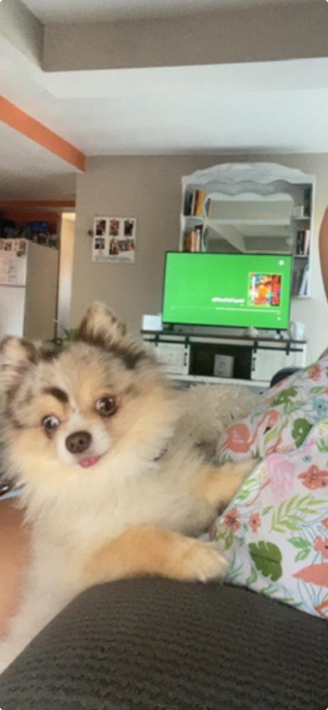 Pet Description:White & brown PomeranianAbout 10 pounds and he always has his tongue out and so sweet ?? |