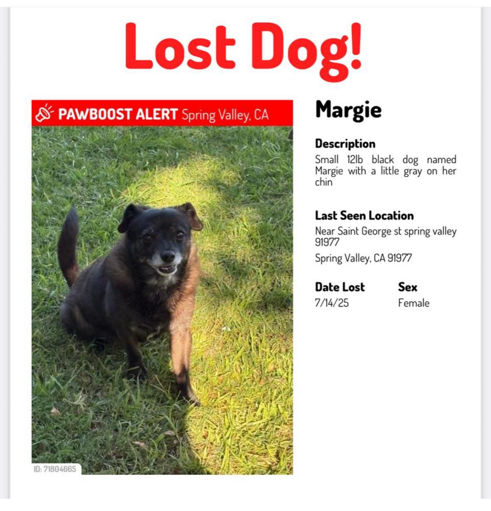 Pet Description:Small black dog with white around mouth and chest,12 pounds,very sweet but doesn’t like to be picked up |