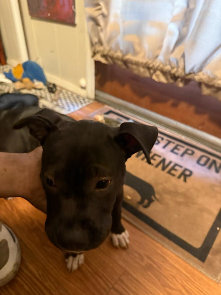 Pet Description:Black puppy about 10 weeks old with a pink collar on and no tag. |