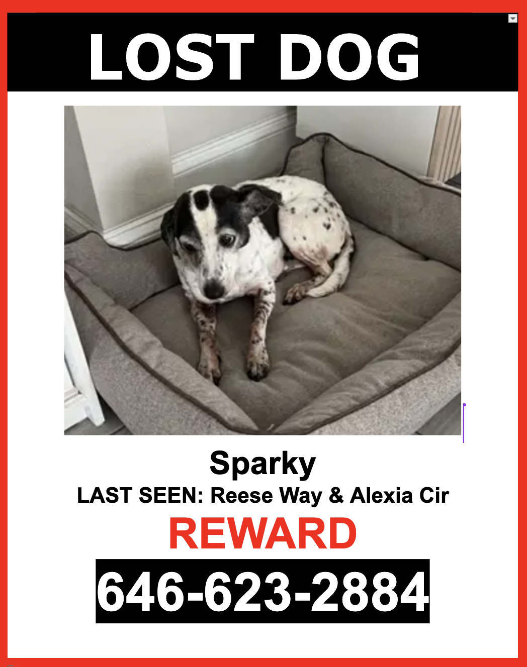 Pet Description:**MISSING SINCE 07/18/25 AT 4 AM**Sparky is a Female, Black and White, Mixed dog who escaped and was last seen near Reese Way & Alexia Cir.. Sparky is wearing a teal collar with/without and isn't microchipped. If you see Sparky please DO NOT CHASE HER. PLEASE CALL OR TEXT ONLY. 646-623-2884 $$ Reward $$ |