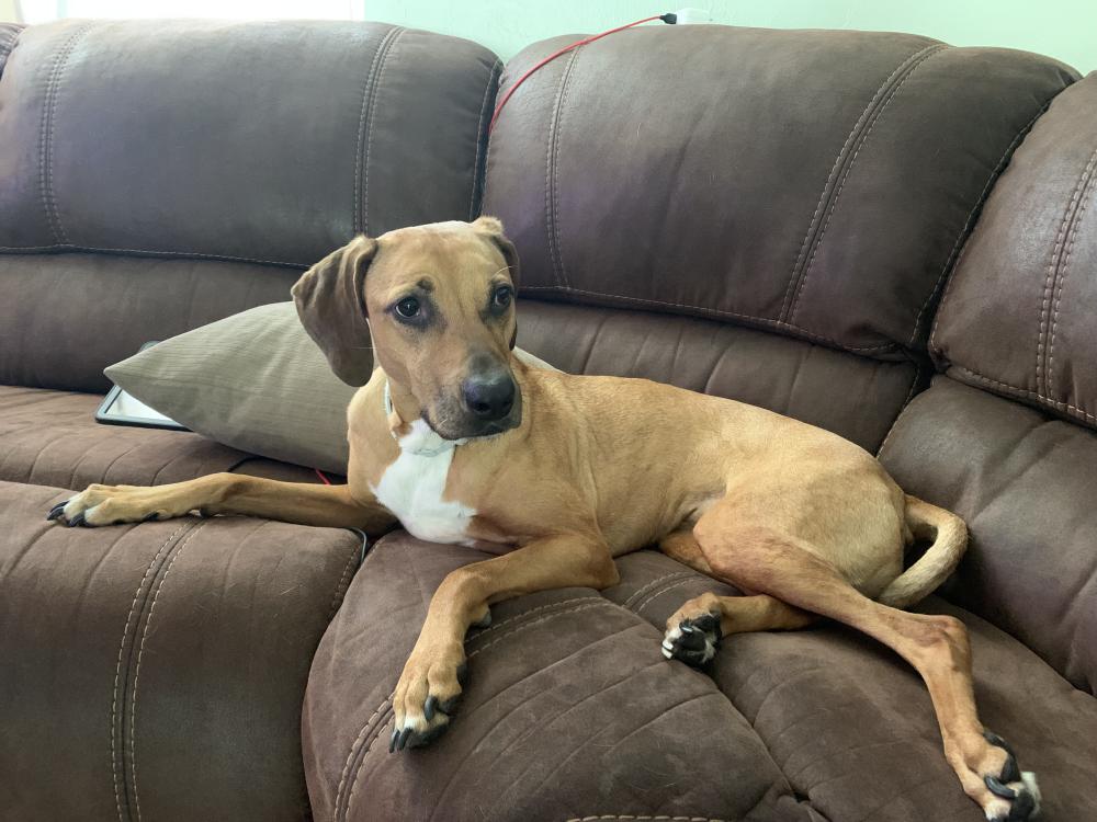 Pet Description:A rescue, female, reddish brown fur, white chin and belly, medium sized- under 50 lbs. Was wearing a pink harness. Not in her home neighborhood- was with a pet sitter. |
