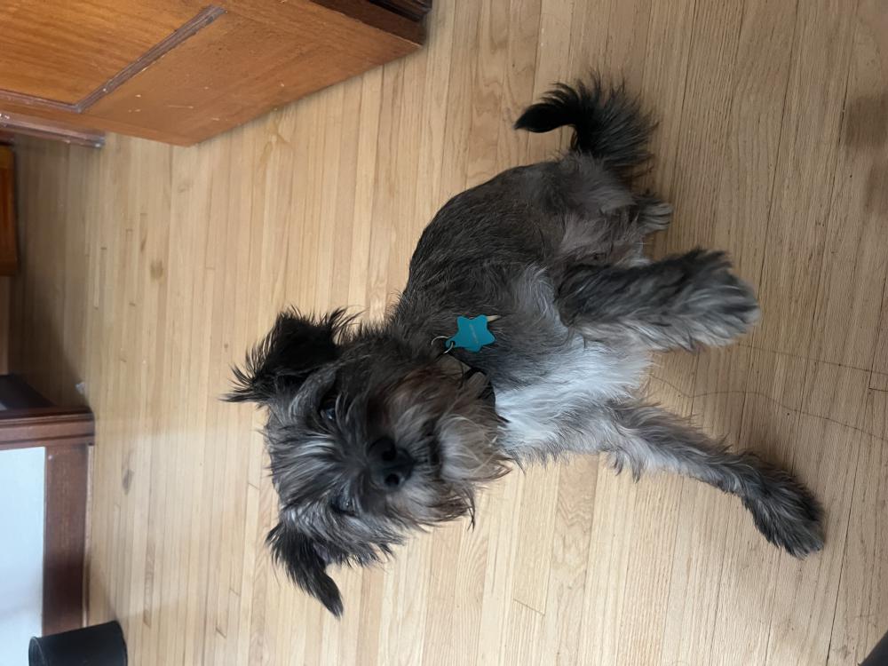 Pet Description:25 pound schnauzer terrier mix with shaggy hair. No collar on. Skiddish around people |