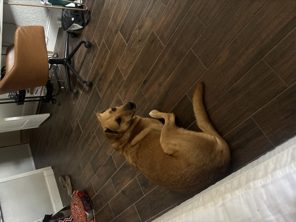Pet Description:She has a blue collar, around 75 lbs. |