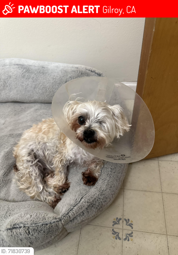 Pet Description:Small white/ tan Maltese- yorkie mix. She has one eye! 11 years old |