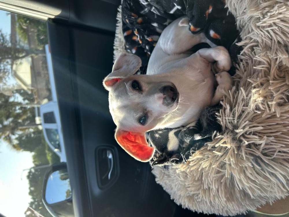 Pet Description:Winny is a small white chihuahua. She’s about the size of a persons forearm. |