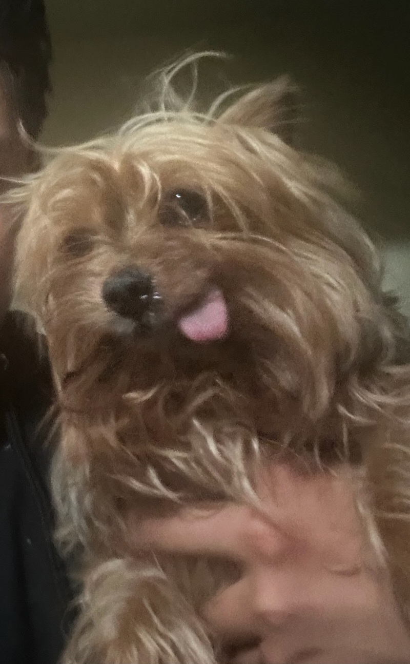 Pet Description:Small 9yr old, tongue hanging out of mouth |