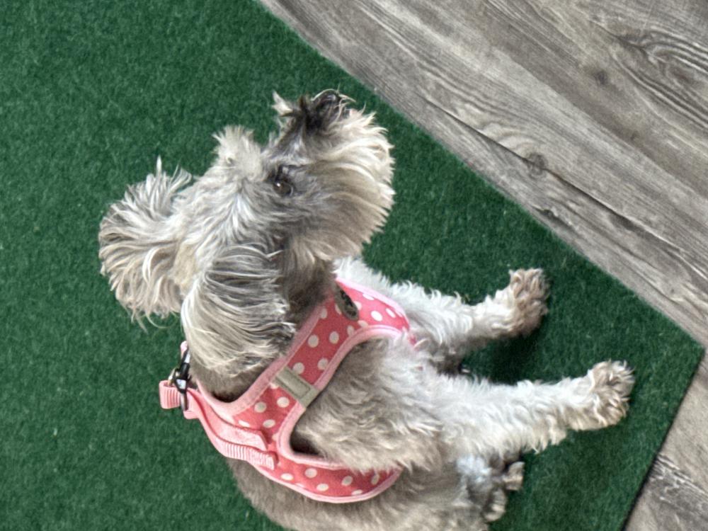 Pet Description:She's a 12lb 13 year old salt and pepper mini schnauzer. She wals |
