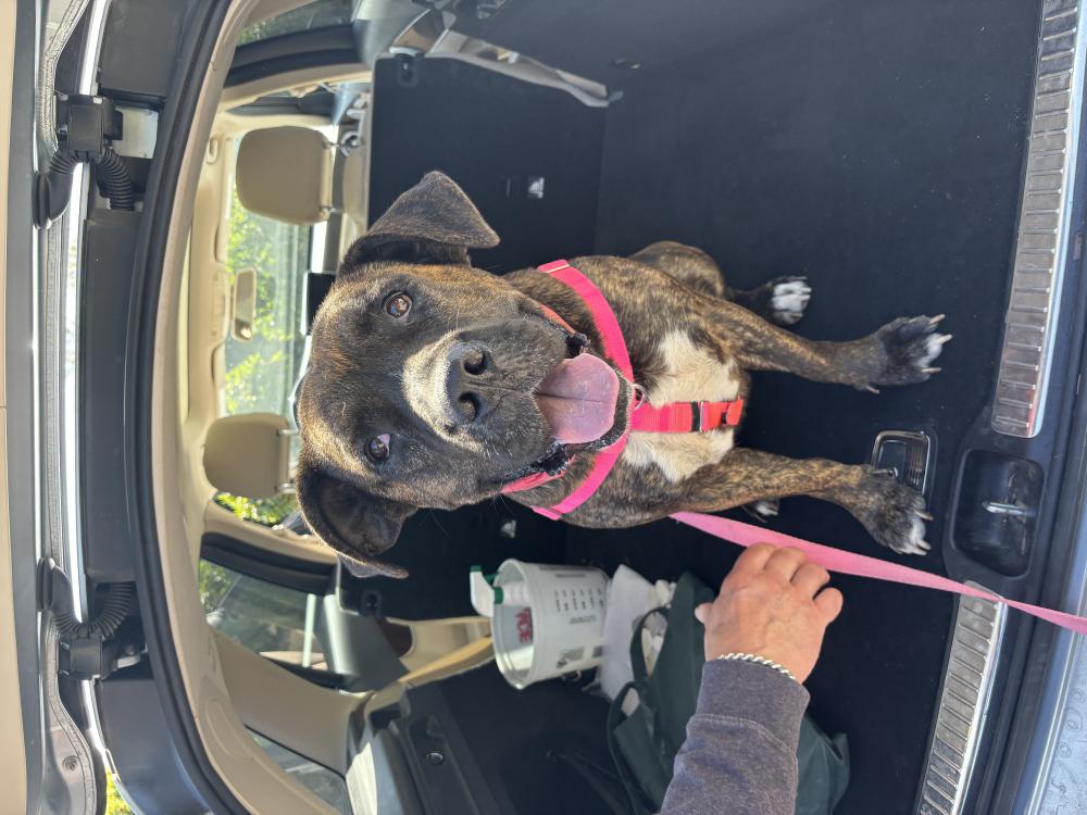 Pet Description:She’s about 75 lbs and is wearing a black collar. |