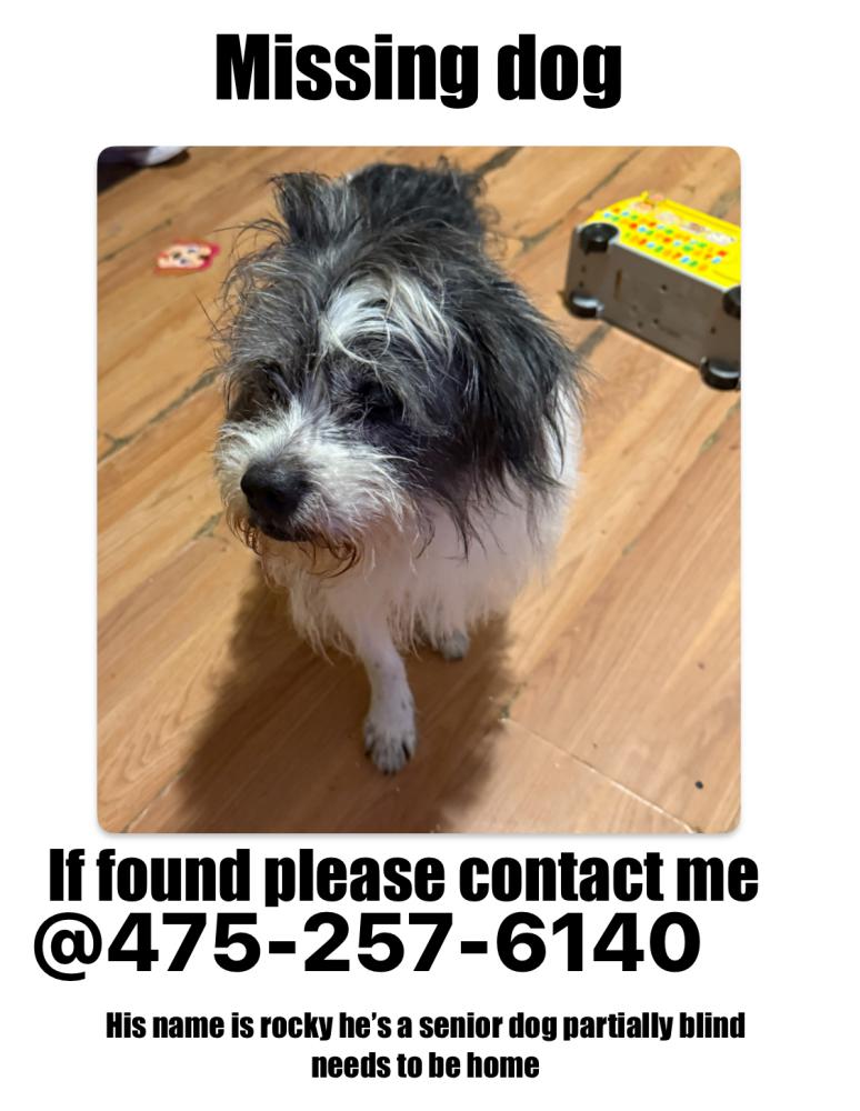 Pet Description:Black and white Senior dog partially blind |