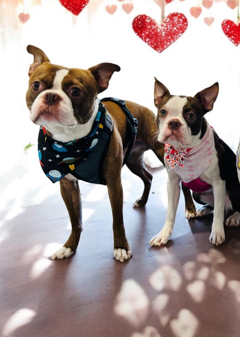 Pet Description:Two. Boston terrier, brown color, female, and male. |
