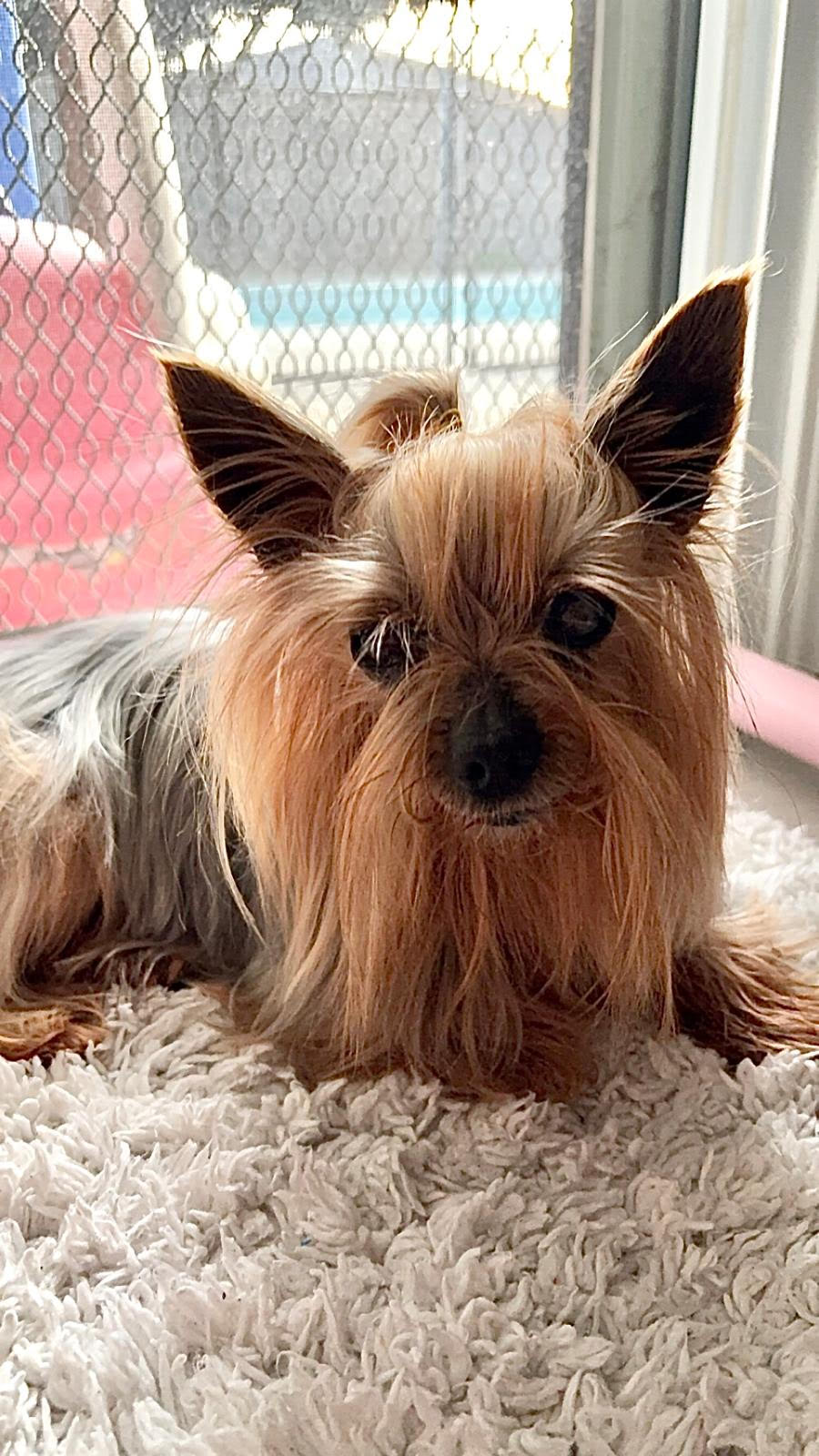 Pet Description:Louie is such a sweet 17 years old puppy, he has cataracts in both eyes for his age so he is blind. He is a teacup size yorkie 5-6 lbs. Love kids and other animals. He is very affectionate little dog. He is has a microchip fully updated. |