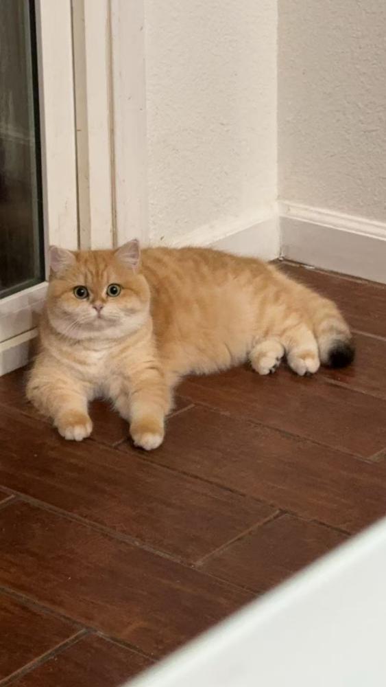 Pet Description:orange medium sized cat, friendly to humans. |