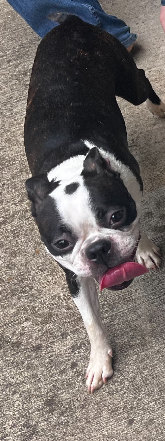Pet Description:She isn’t even two years old yet. She is very small, but very chunky. She might still be wearing a shock collar. She has a small black circle on her forehead. |